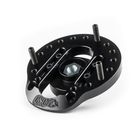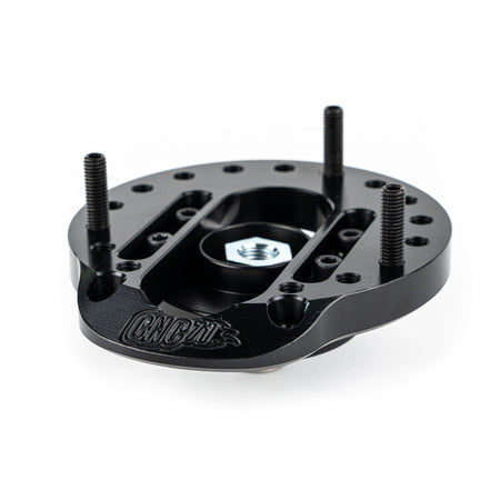 Camber plate for BMW E36/E46/E39/E8x/E9x with increased range of adjustment designed by CNC71 Motorsport allows to adjust the camber and caster angle of the front wheel in a range of up to +/- 6 degrees from the serial position. This is the maximum that can be achieved without modifying the cup while maintaining adjustability.