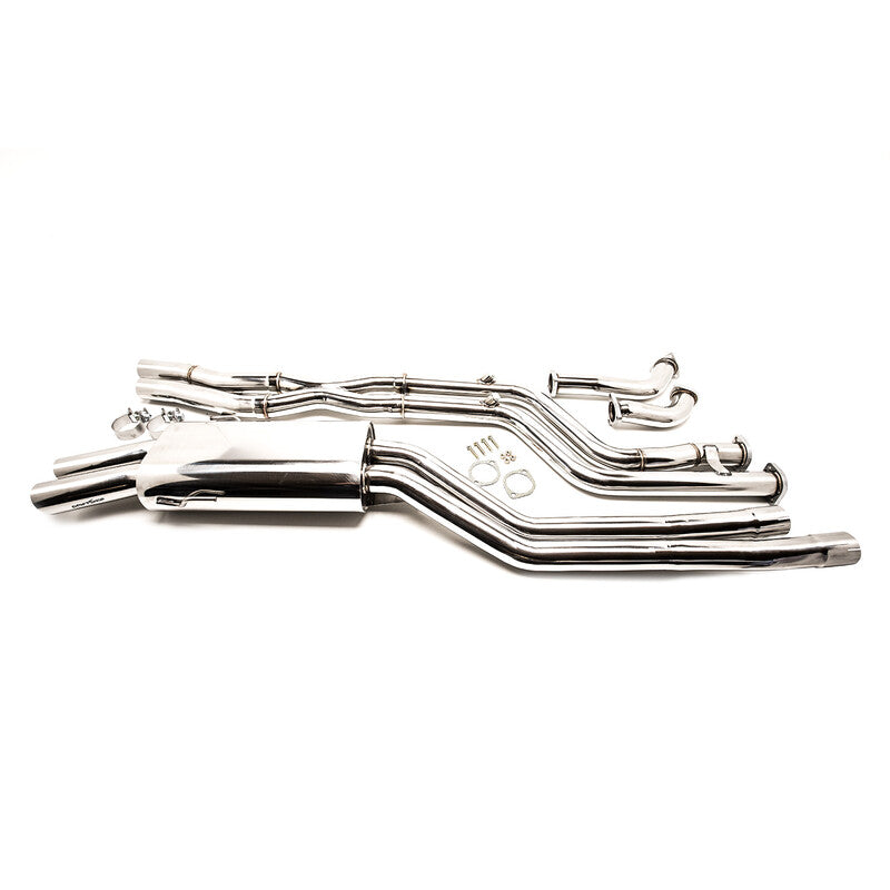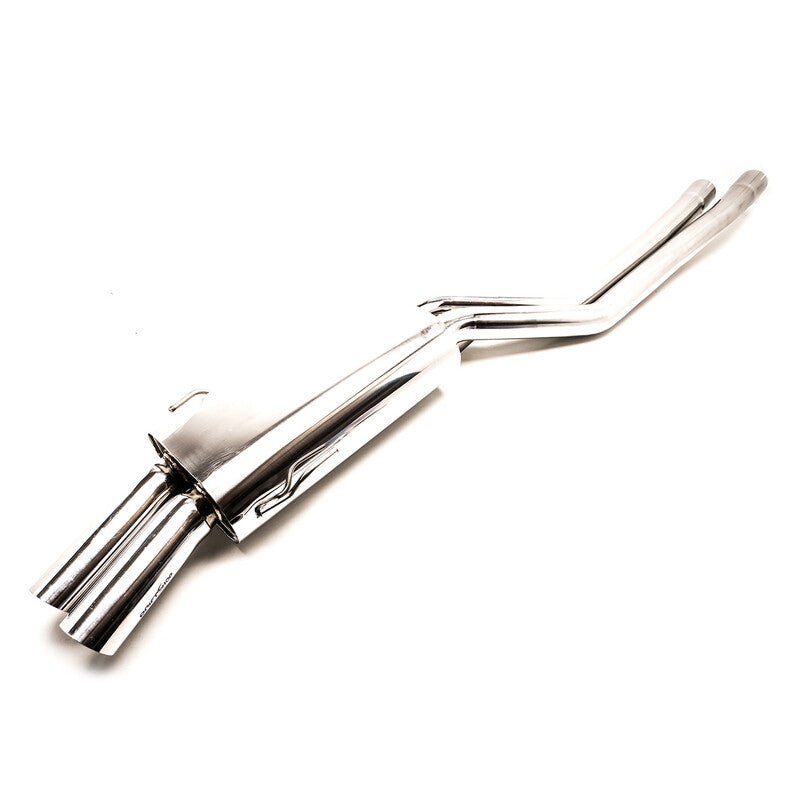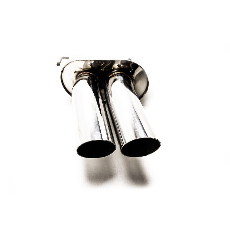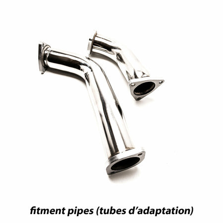 Este escape incluye dos tubos de adaptación (ver segunda imagen), que permiten su instalación tanto en modelos M3 como en versiones no-M, sin necesidad de modificar nada.